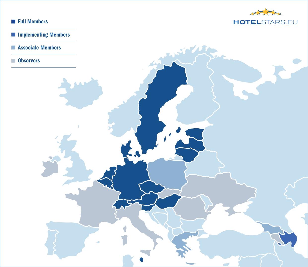 Sous le patronage de HOTREC - Hospitality Europe, les associations hôtelières d'Autriche, de République tchèque, d'Allemagne, de Hongrie, des Pays-Bas, de Suède et de Suisse ont fondé l'Union Hotelstars en 2009. Entre-temps, les pays suivants ont rejoint la famille des étoiles : Estonie (2011), Lettonie (2011), Lituanie (2011), Luxembourg (2011), Malte (2012), Belgique (2013), Danemark (2013), Grèce (2013), Liechtenstein (2015), Slovénie (2017), Azerbaïdjan (2020), Géorgie (2021) et Pologne (2022).